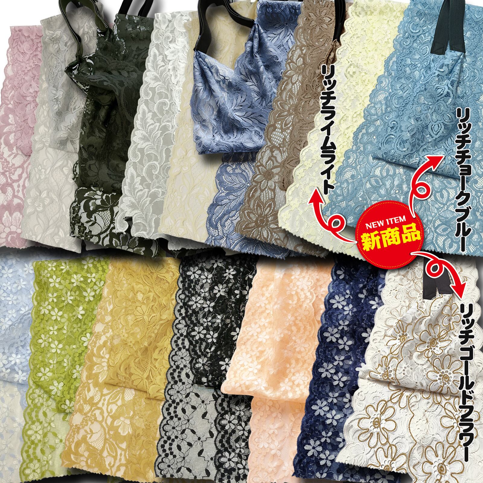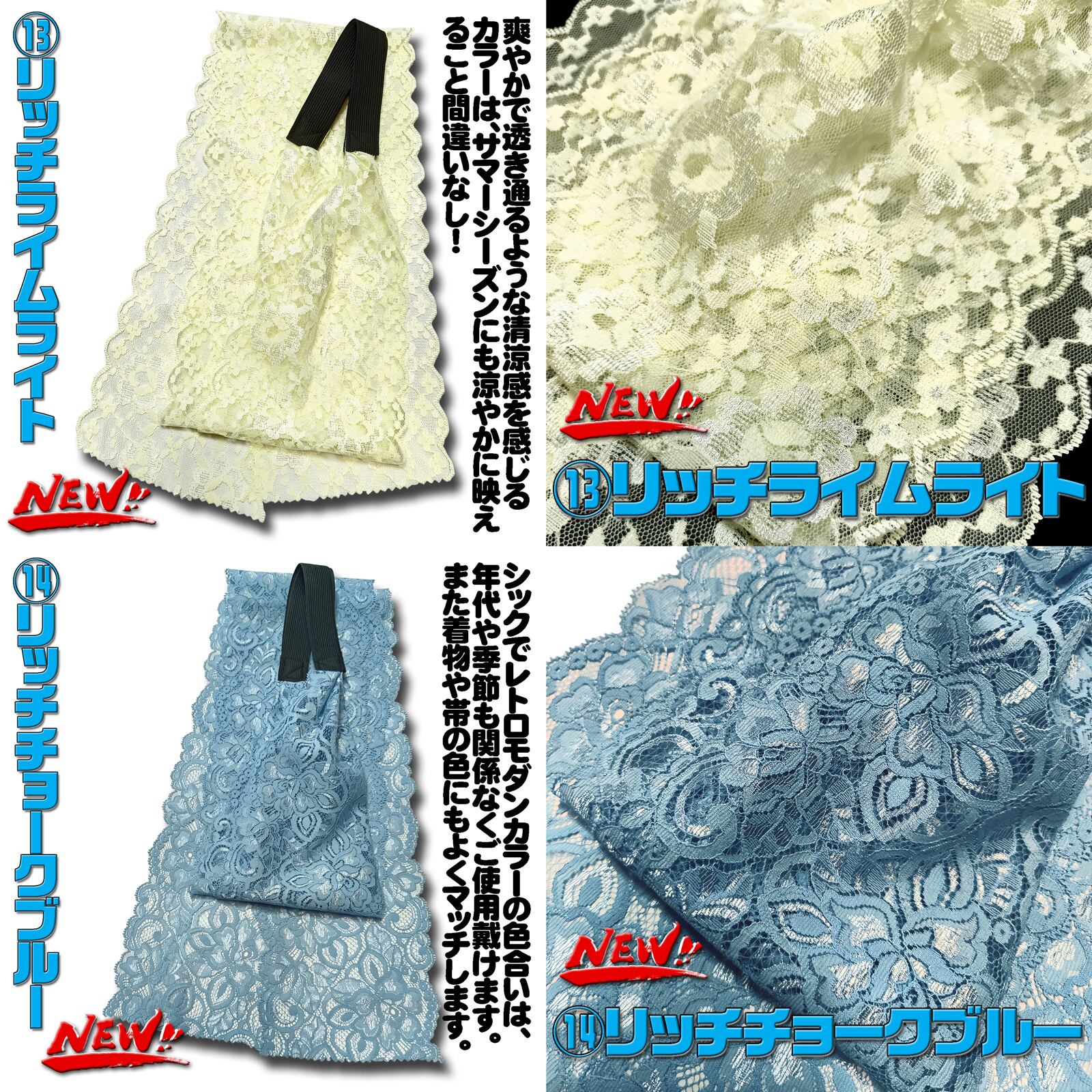 新色!「リッチライムライト」「リッチゴールドフラワー」「リッチチョークブルー」の3色が追加になって、ますます着用のシーンが広がります(^^♪